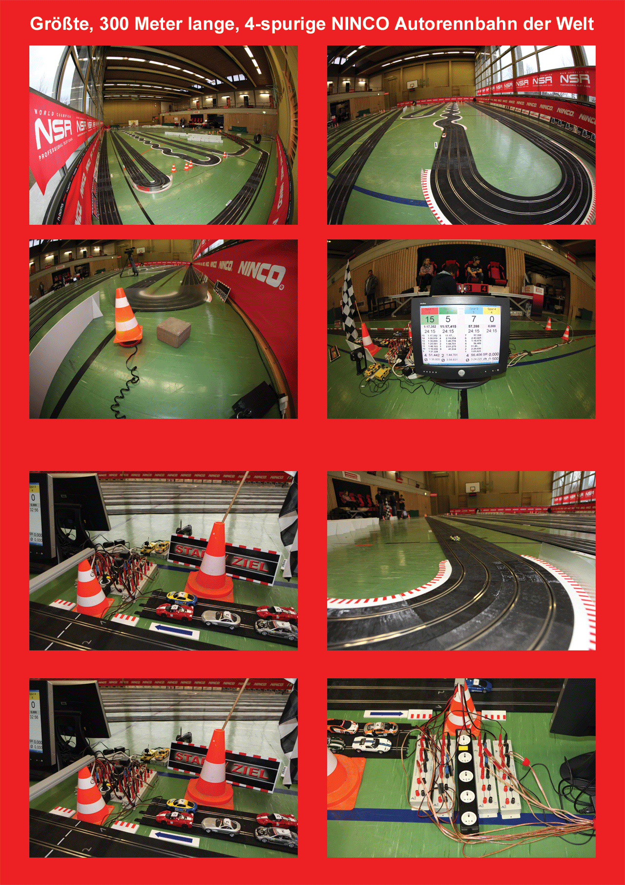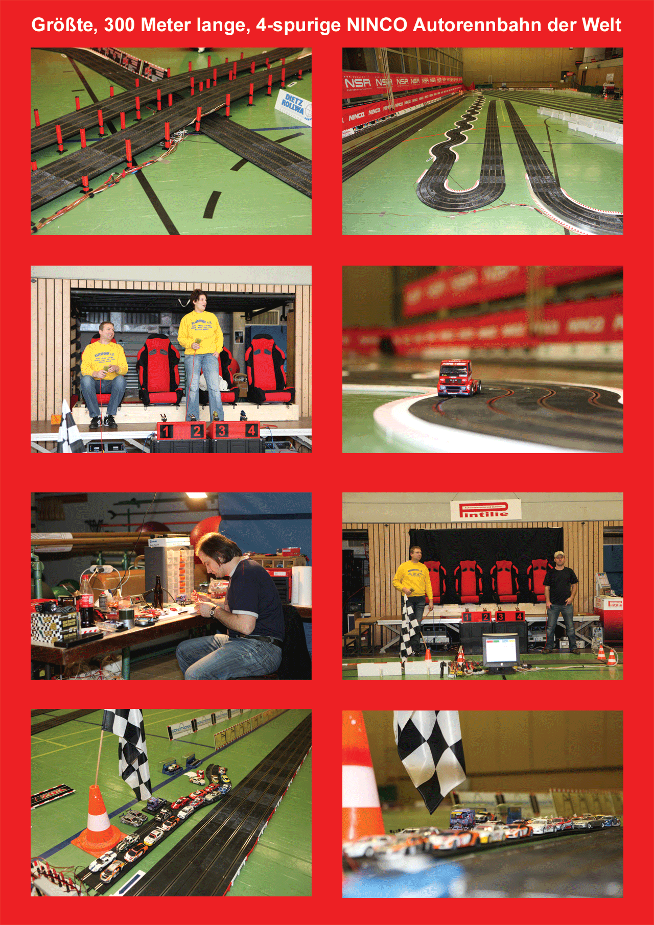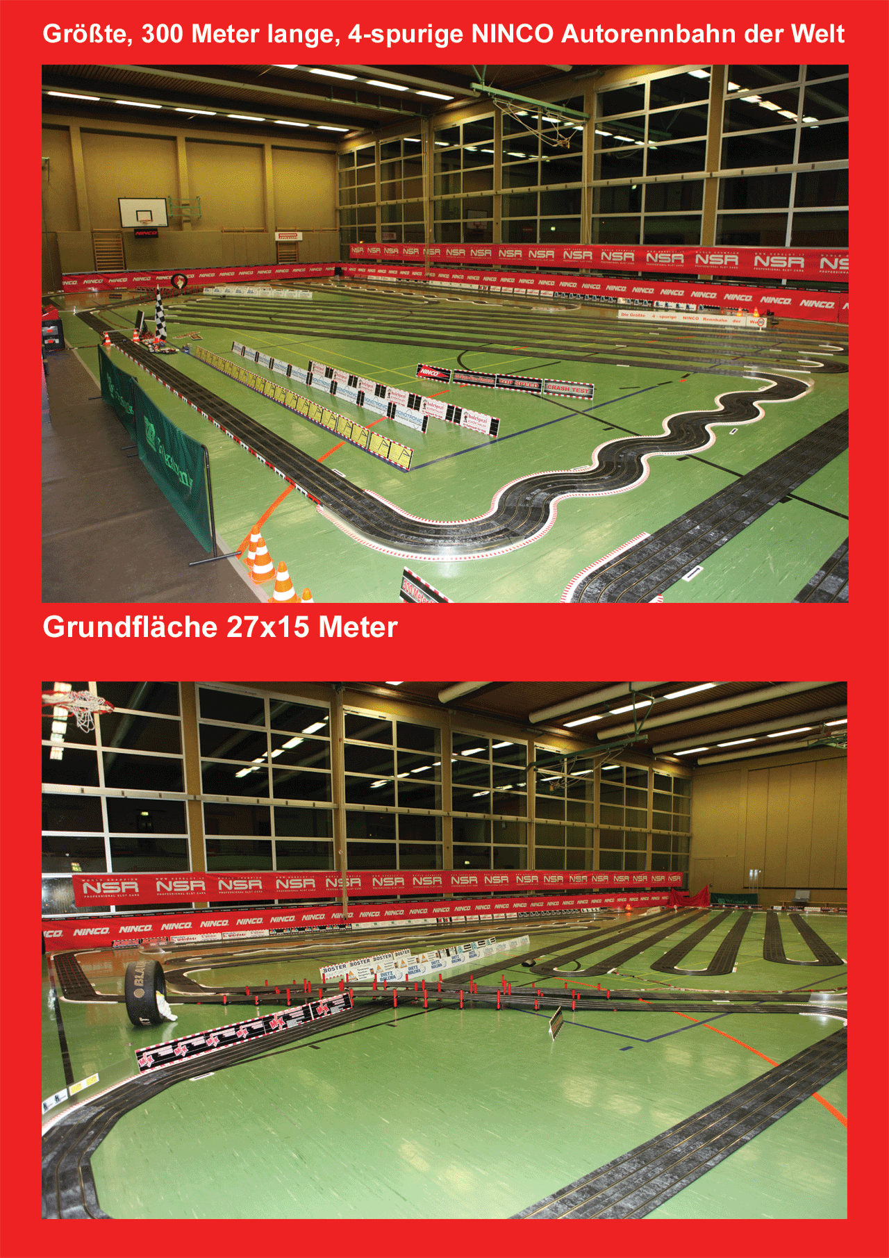 Größte, 300 Meter lange, 4-spurige NINCO Autorennbahn der Welt