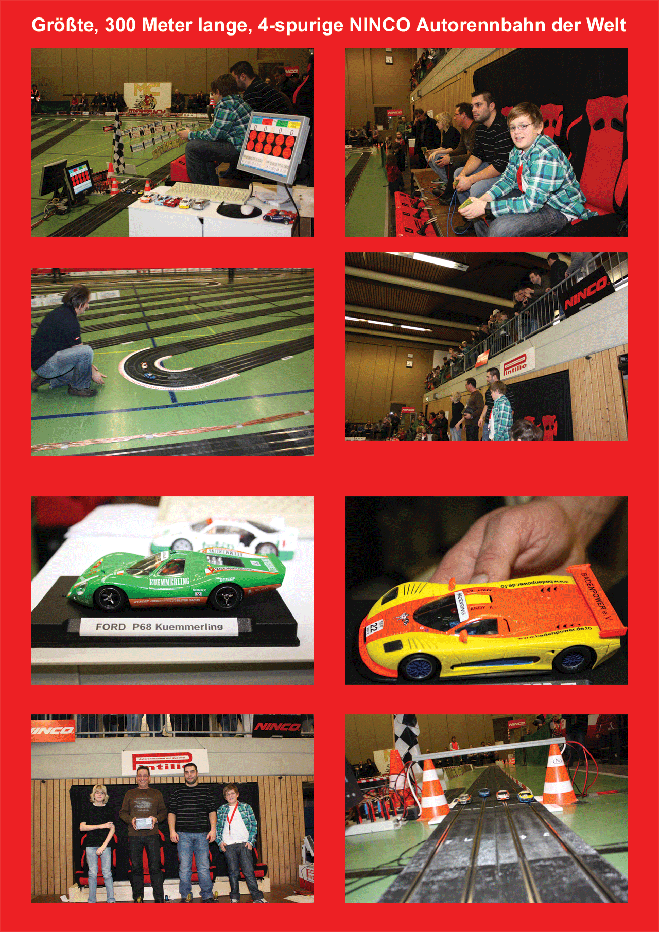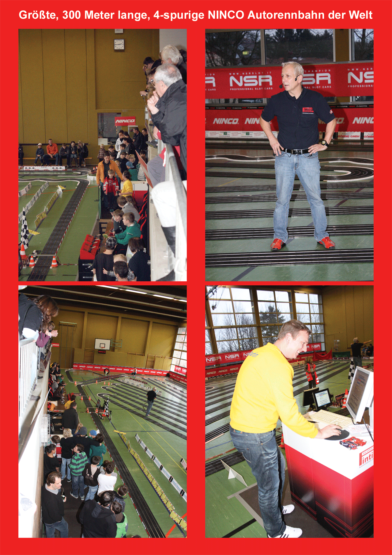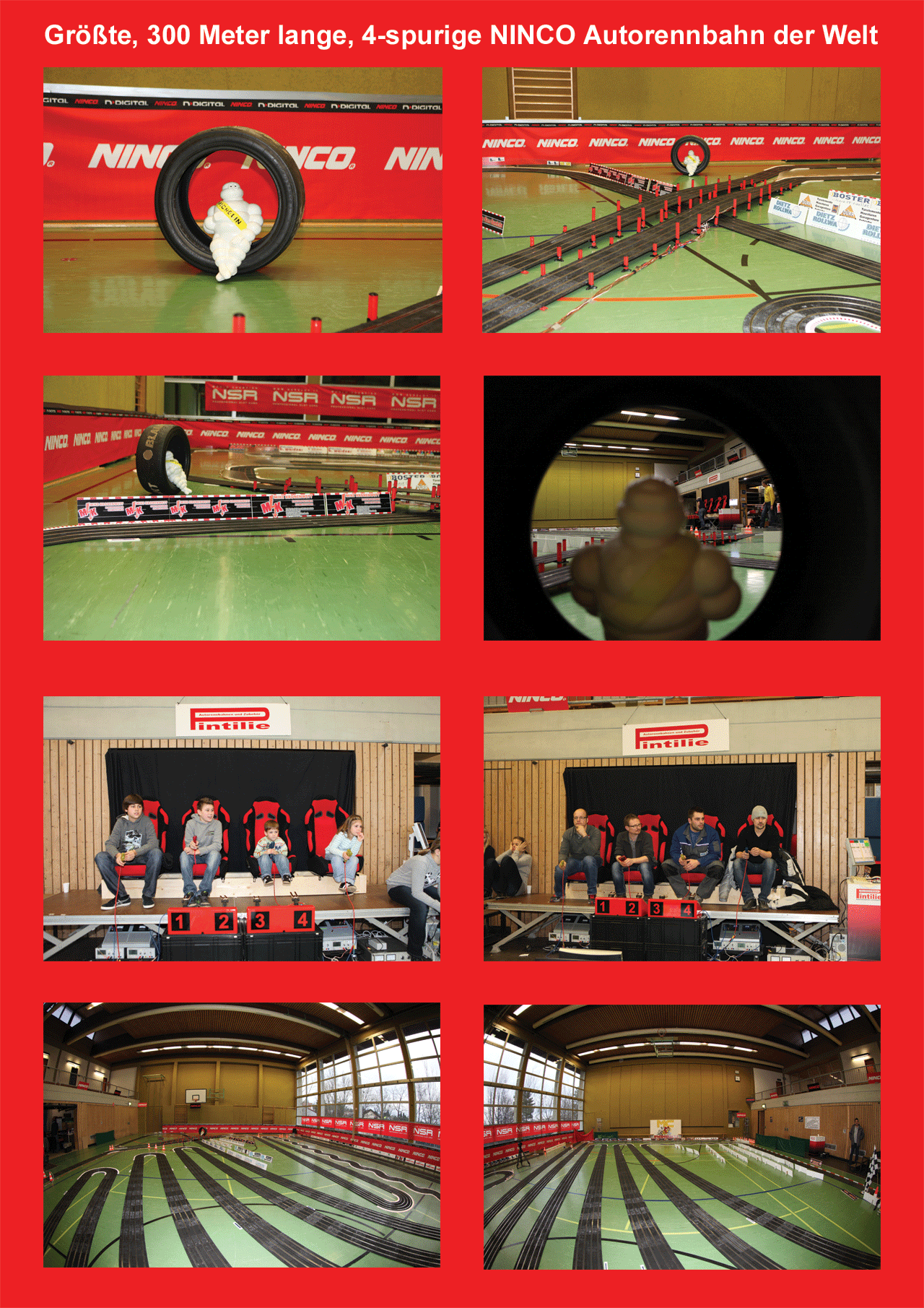 Größte, 300 Meter lange, 4-spurige NINCO Autorennbahn der Welt