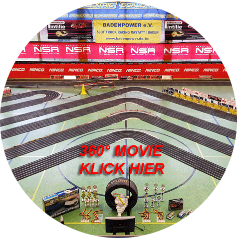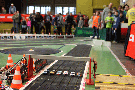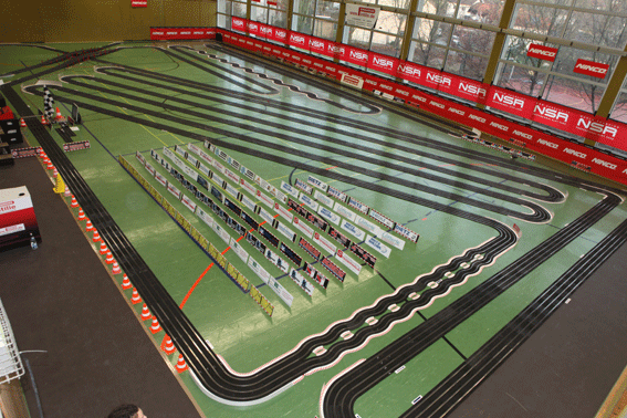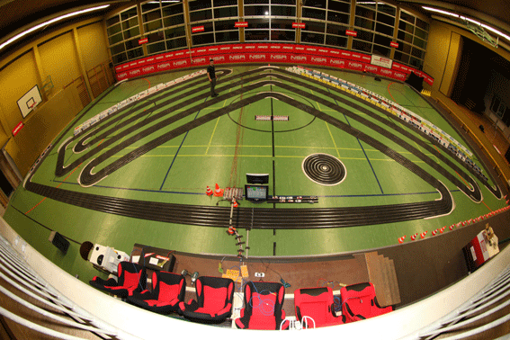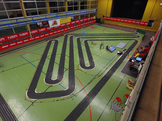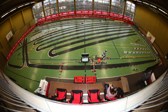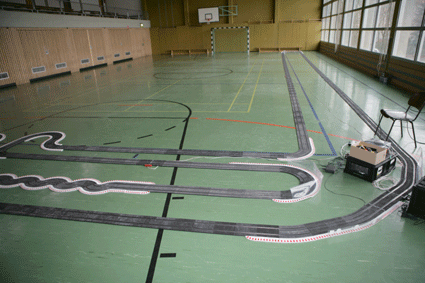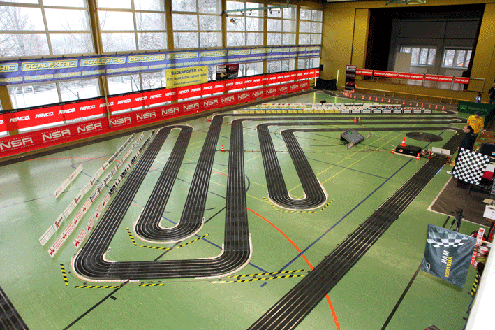 317 Meter lange, 2-spurige NINCO Rennbahn in der Wasenhalle in Ittersbach