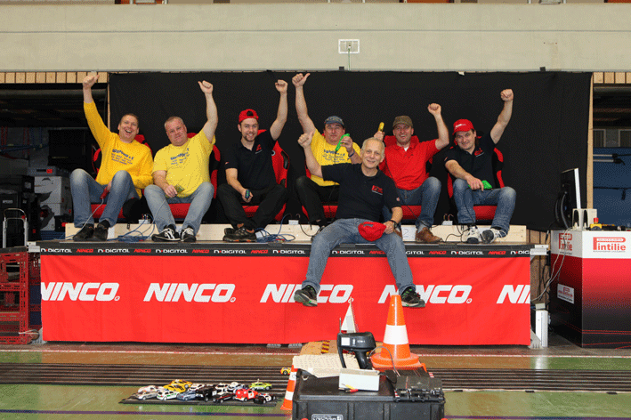 Unser Rennevent 2018 am 30.12.2018 war ein voller Erfolg und wir hatten wieder einmal unsere 200m lange 6-spurige Ninco Rennbahn aufgebaut. Für den Aufbau haben wir (6 Personen) gerade einmal zwei Tage benötigt. Es geht immer schneller und wir optimieren den Aufbau von einem Rennevent zum anderen. Die Gruppeneinteilung hat sich in den Jahren zuvor bewährt, somit können verschiedene Gruppenmitglieder in einem Rennen gegeneinander fahren. Nach jedem Rennen wurden die Gruppenlisten aktualisiert und jeder konnte an einem Monitor die Rangliste für die finalen Läufe verfolgen. Der Sieger eines jeden Laufes durfte auf meinem Rennsimulator eine Runde Hockenheim mit einem McLaren GT fahren. Um 17:00 Uhr war es dann soweit, die besten sechs aus den vier Gruppen traten gegeneinander an.