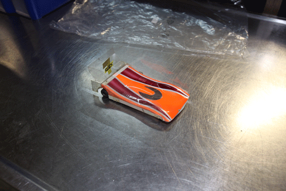 Wing Car von Markus. Die Kiste dreht sage und schreibe 180000 Umdrehungen. Leider für unsere Bahn nicht geeignet.