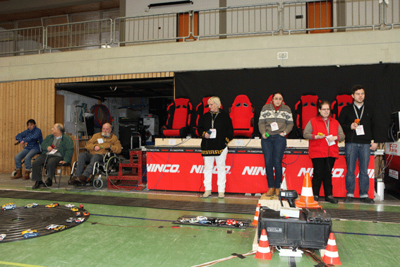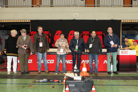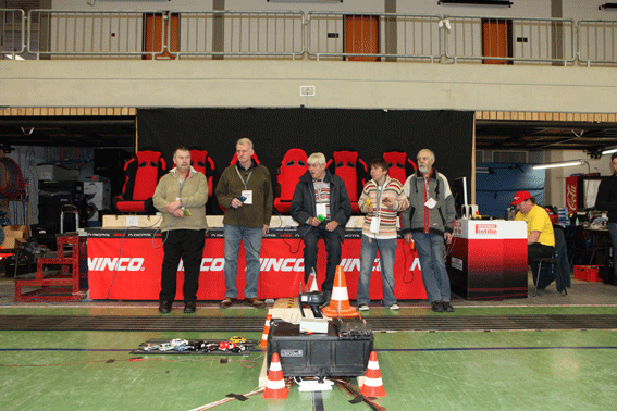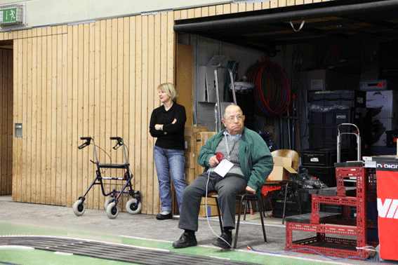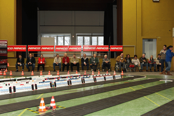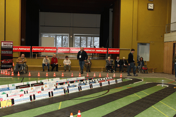 Auf Lauerstellung und immer bereit eine schneller Runde zu drehen auf der 200 Meter langen, 6-spurigen NINCO Rennbahn in der Wasenhalle in Ittersbach.