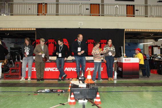 Jeder wollte die schnellste Runde auf der 200 Meter langen, 4-spurigen NINCO Rennbahn drehen. Doch es war nicht einfach, ein wenig zu schnell in der Kurve und schon ist man rausgeflogen. Die Streckenposten hatten alle Hände voll zu tun.