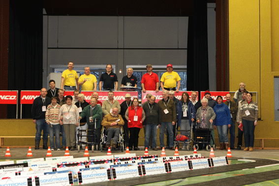 Die Gäste des Pflegeheims Hochmühle auf der Warteposition. Gleich wird die nächste Rennrunde eingeläutet.