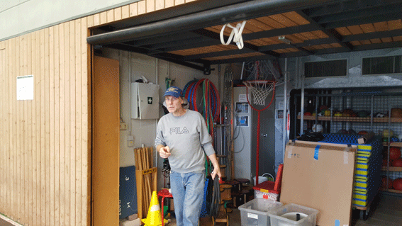 Wo kommen die Schienen hin? Andy steht etwas planlos in der Halle.