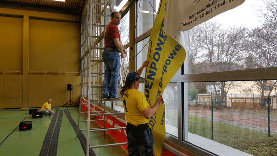 Andreas und Andy beim Banner aufhängen.