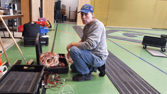 Marcell muss die Audioanlage verkabeln. Andere Arbeiten sind für ihn zu gefährlich.