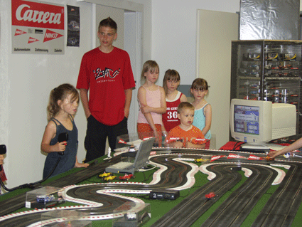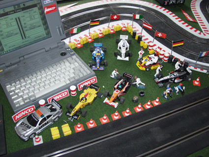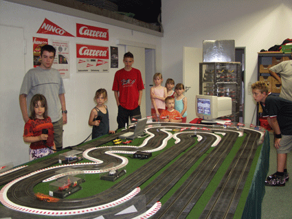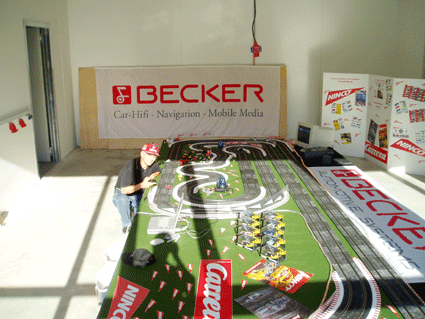 | 30 Meter lange Ninco Bahn. Jubiläumsfeier am 07.Juni 2003 der Firma Kiebelstein und Kronenwett. |