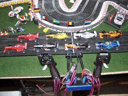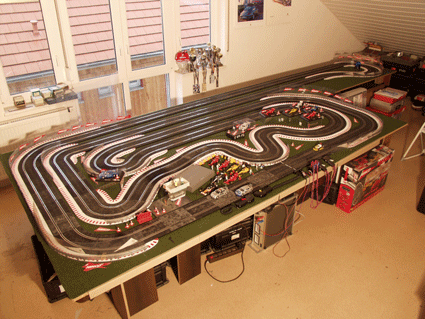 | Meine Ninco Rennbahn. 30 Meter lang. Schnellste Runde mit 5,913 sec. mit einem Scalextric Ford Mustang. | ![]() |