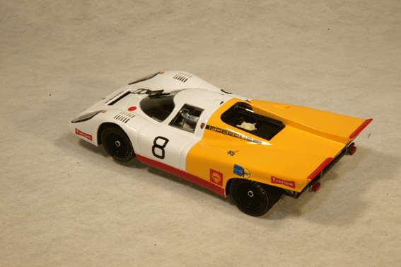 Motor: Sidewinder schwarz, weiche Profilreifen, im Heck ist ein Ersatzreifen untergebracht, gute Fahreigenschaften und schönes Design. Ein 917er der sich sehen lassen kann. |