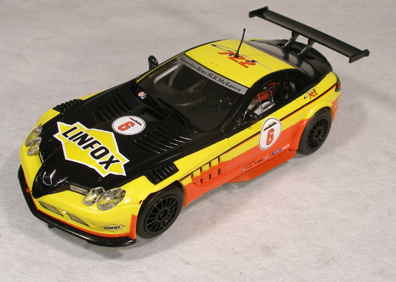 Motor: Sidewinder, Sliks, Licht vorne und Hinten, liegt sehr gut auf der Bahn und ist schnell, super Design, der Motor ist durch die Heckscheibe schön zu sehen. |