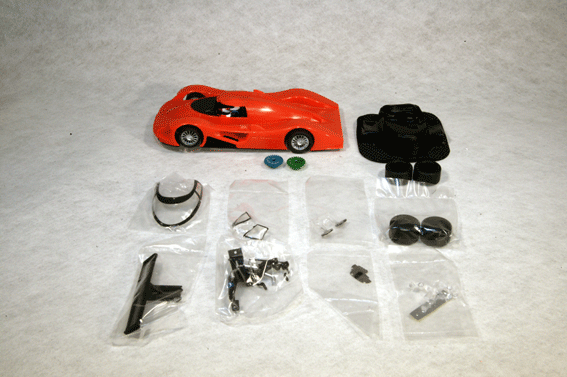 Motor: Anglewinder, Sliks, Ritzel und Felgen geschraubt, zus. 2 Paar Sliks weich, Resine Cockpit, Flat-6R Motor, zus. zwei Ritzel. |